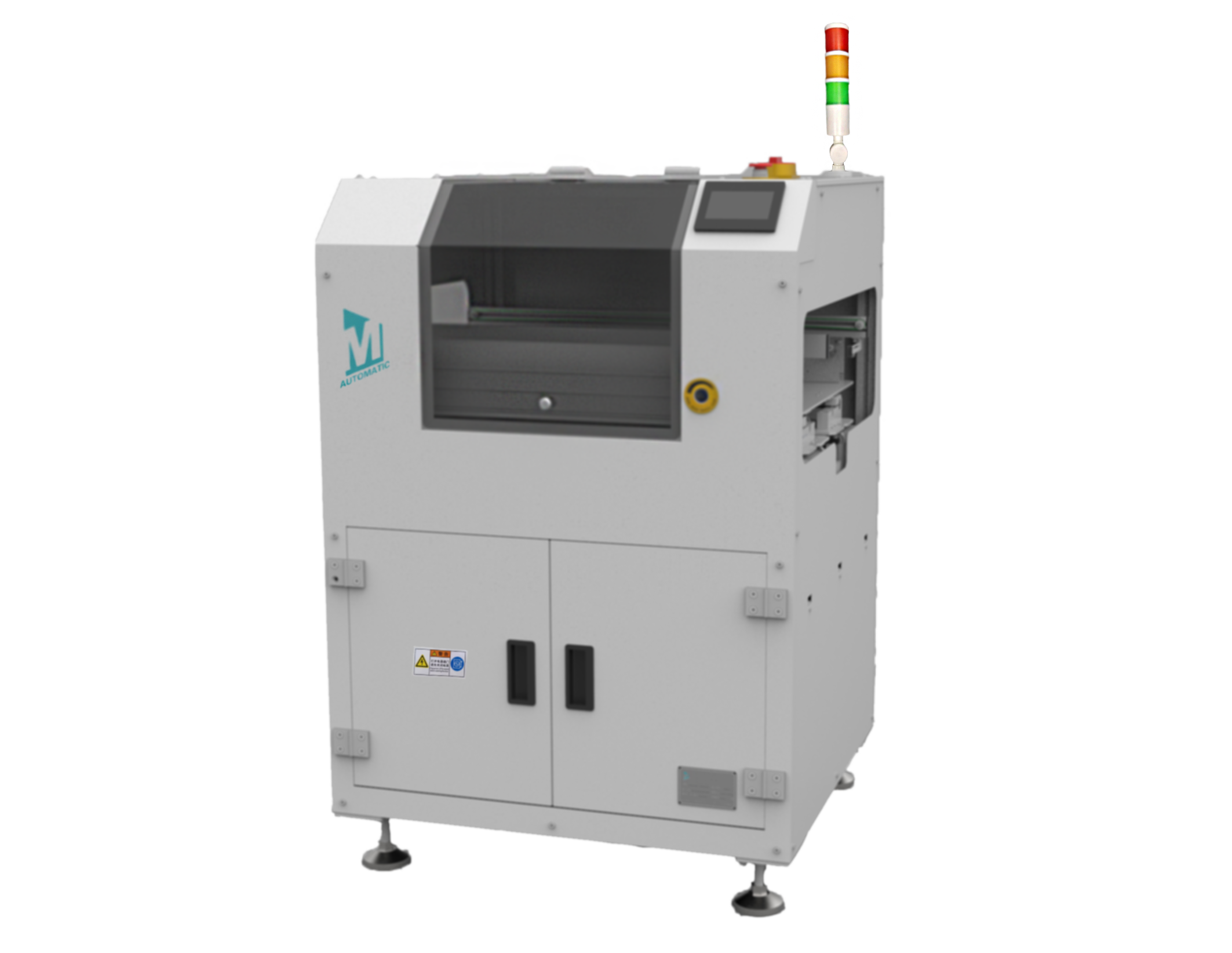 該設備用于SMT生產(chǎn)線PCB板的上板動作。由工作人員將PCB光板放入設備料倉,再由內(nèi)部吸板機構將PCB板吸取放入軌道,輸送至后段設備,完成上板動作。