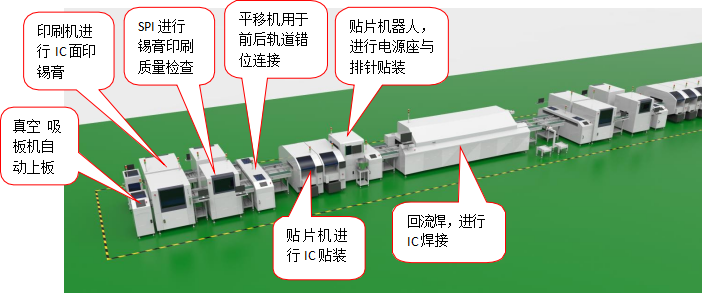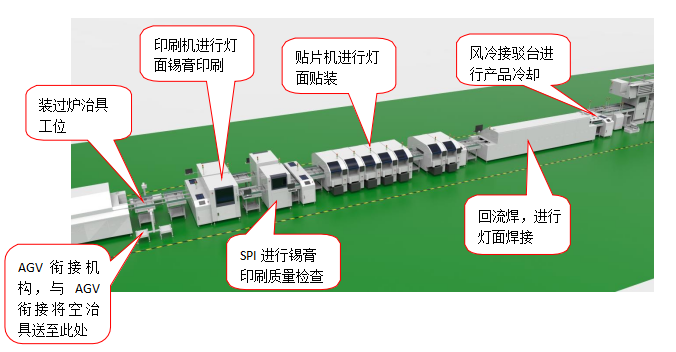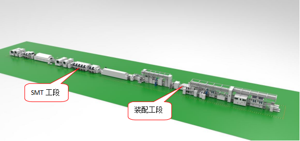 1) 線體將 SMT 工段與裝配段直接對(duì)接,產(chǎn)品無(wú)需周轉(zhuǎn),減少人工接觸,提升產(chǎn)品品質(zhì),實(shí)現(xiàn)從原料投產(chǎn)到成品出產(chǎn);
